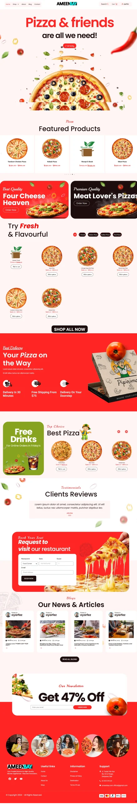 Variety showcase with category filter (All / New / Popular / Pizza / Burger etc.)